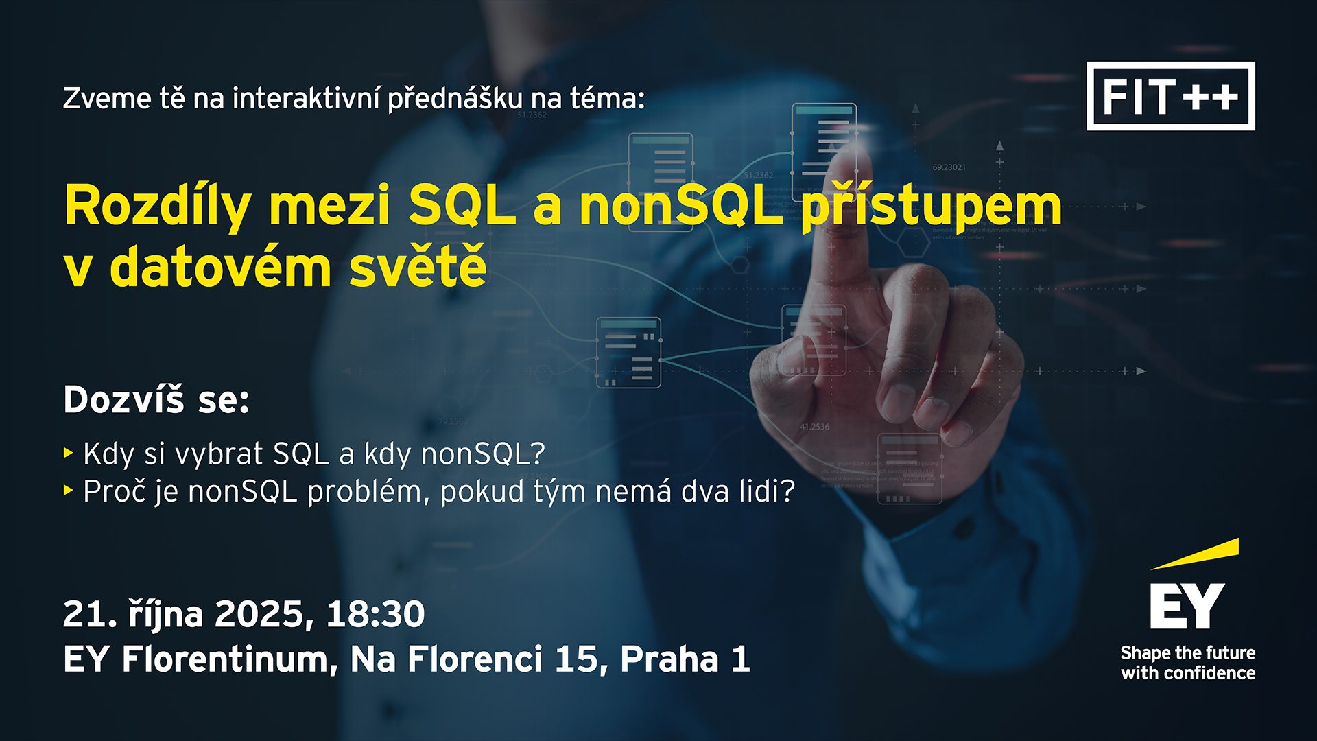 S naším partnerem EY jsme si pro tebe připravili další workshop, tentokrát na téma “Rozdíly mezi SQL a nonSQL přístupem v datovém světě”.
